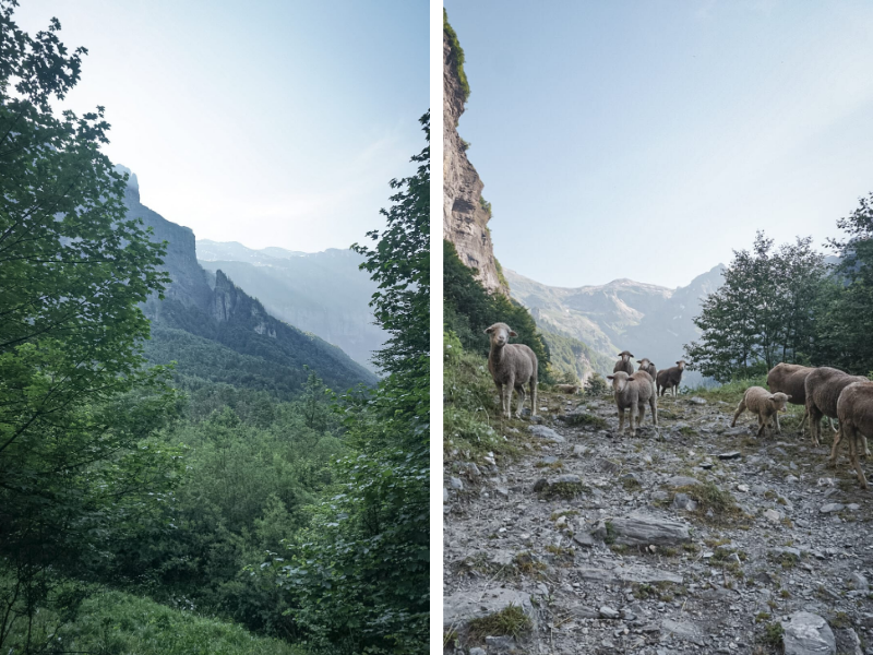 Het landschap wordt compleet gemaakt door een kudde van minstens honderd schapen die midden op het pad langzaam ontwaken in het zachte ochtendlicht. Het geluid van bulderende watervallen echoot tussen de wanden, afgewisseld met het geblaat van zeker tweehonderd schapen die het wandelpad versperren. Het is vroeg, en ik ben nog geen andere wandelaars tegengekomen. De zon verschuilt zich nog net achter de oostflank, maar hier en daar pieken haar stralen al over de bergkam. Het belooft een prachtige dag te worden.