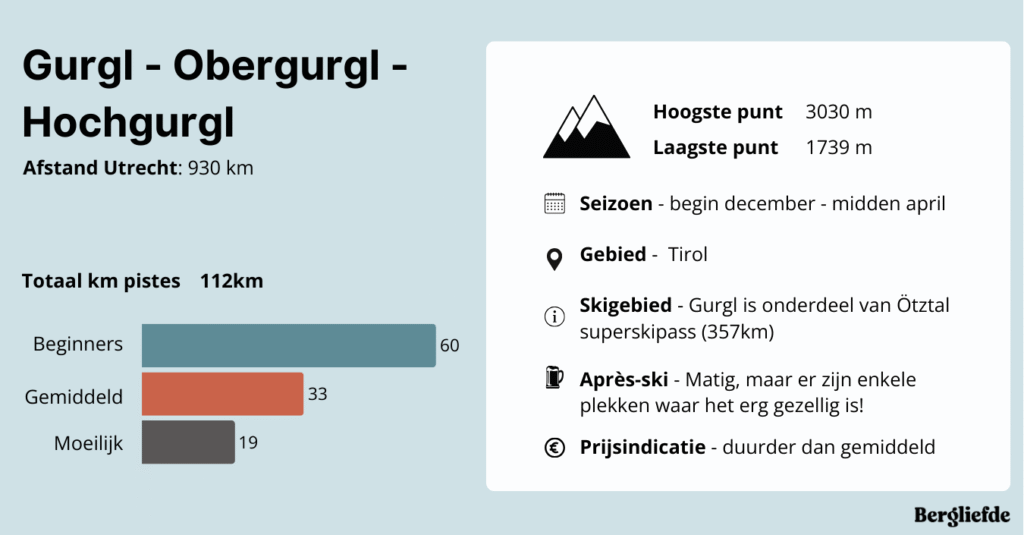Obergurgl en Hochgurgl ā samen vaak aangeduid als Gurgl ā liggen helemaal aan het einde van het Ćtztal, voorbij Sƶlden. Dankzij de hoge ligging en de sneeuwval uit zowel het noorden als zuiden is het een van de meest sneeuwzekere skigebieden van Oostenrijk. Met 112 kilometer aan pistes is het gebied overzichtelijk, maar toch uitdagend, en vrijwel het hele seizoen door in topconditie.