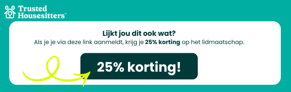 Meld je je aan via mijn persoonlijke link, dan krijg je 25% korting op je aanmelding bij TrustedHousesitters.